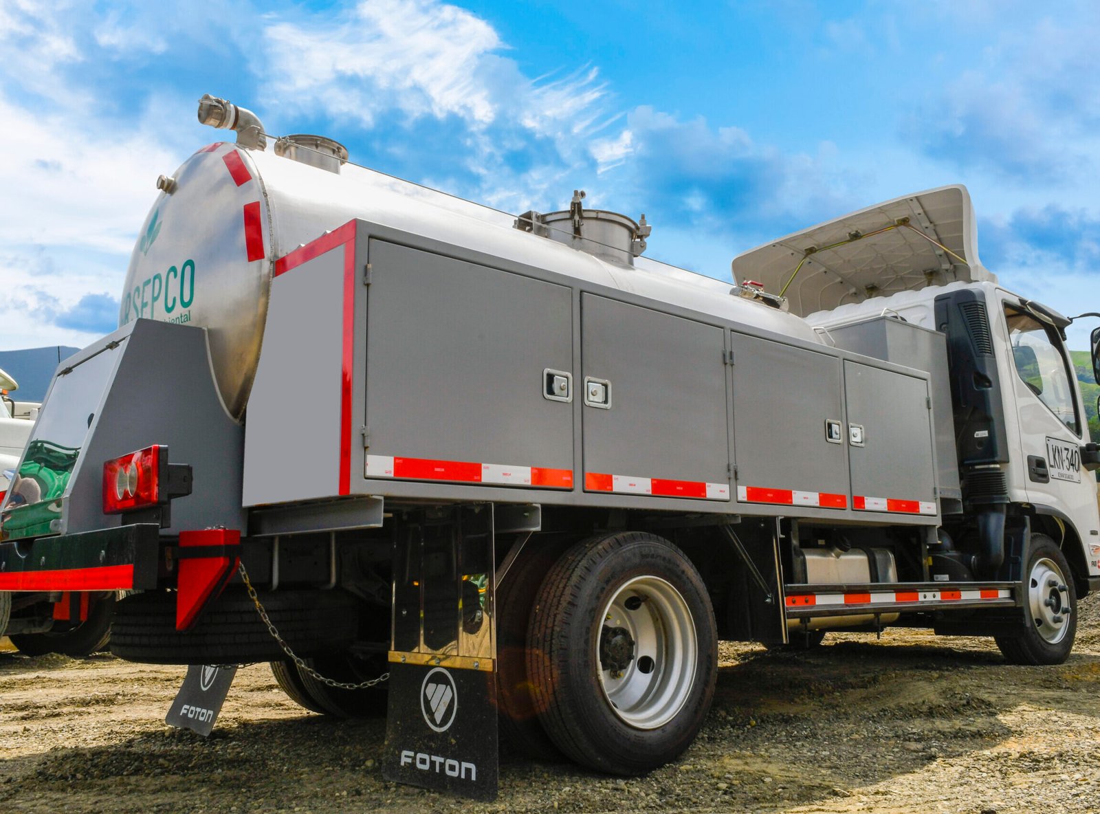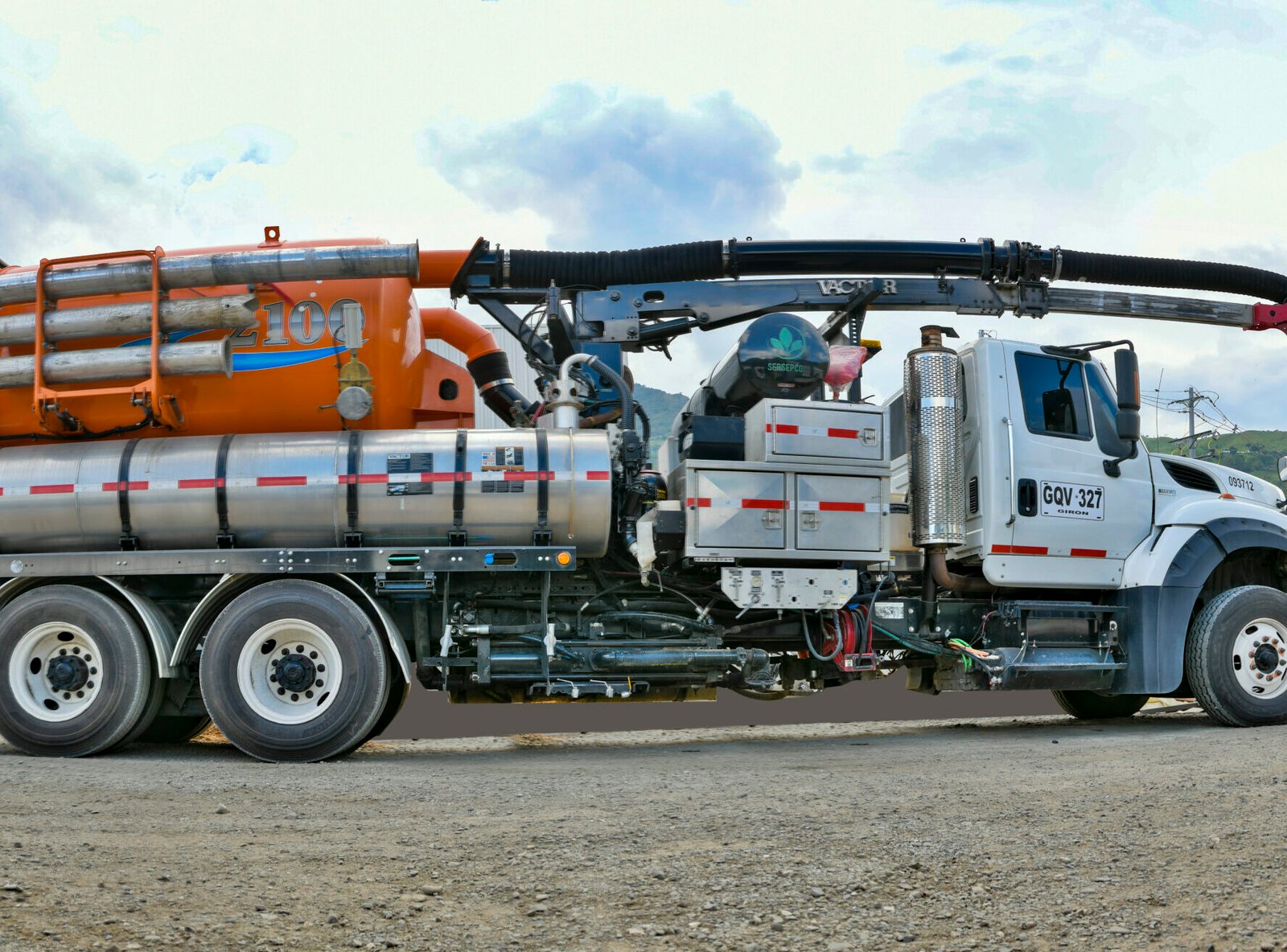 - Capacidad dual: Tanque de 9 m³ para lodos y 1.500 galones de agua limpia.